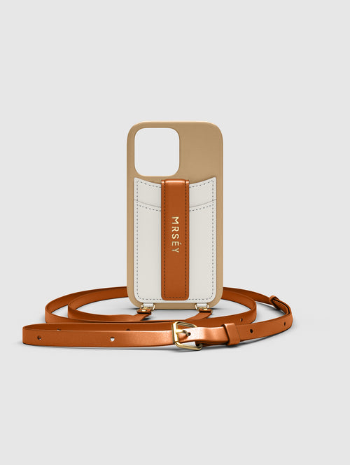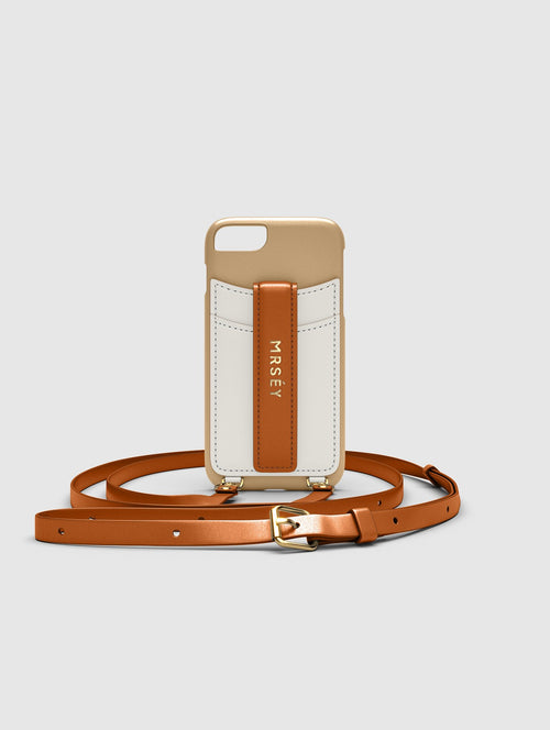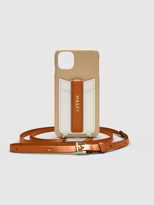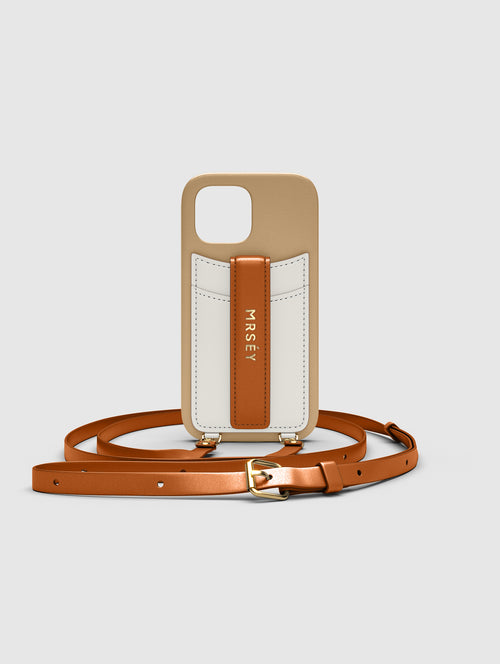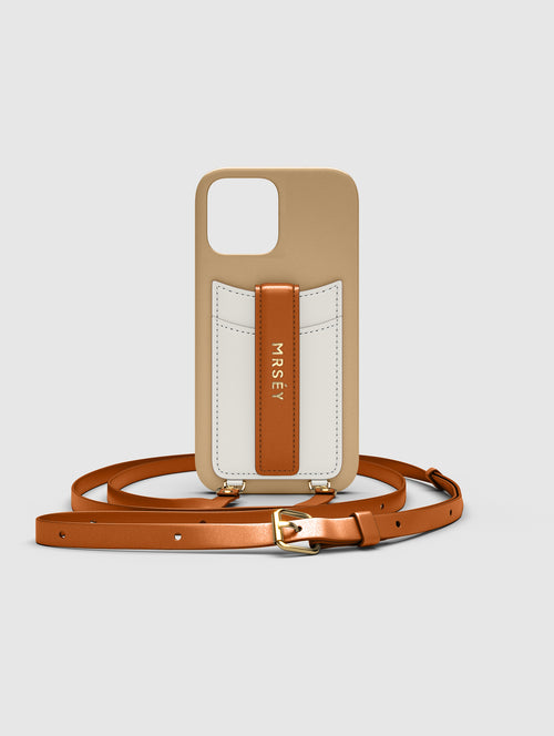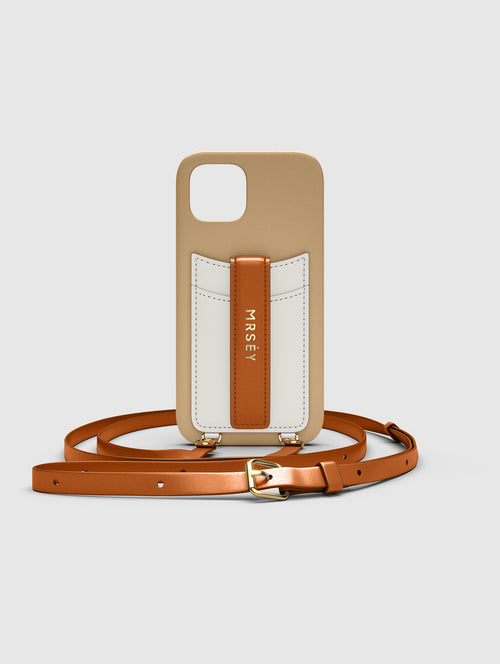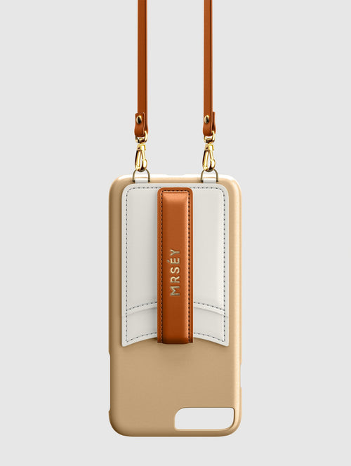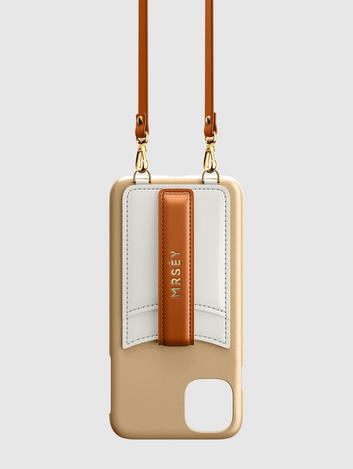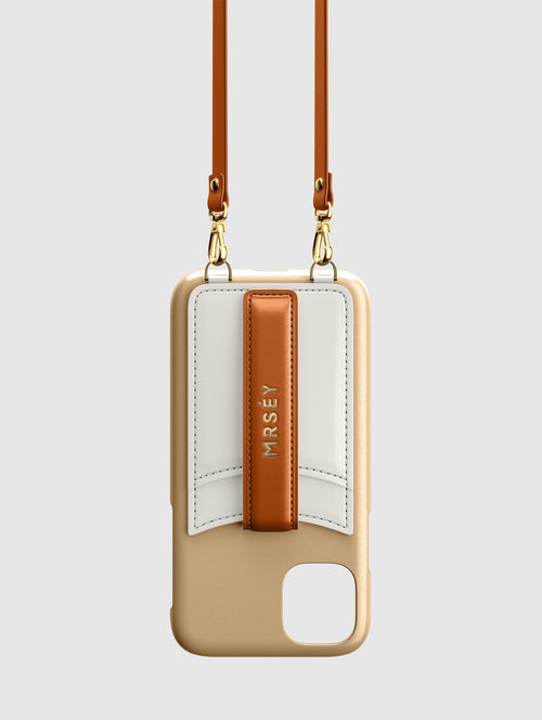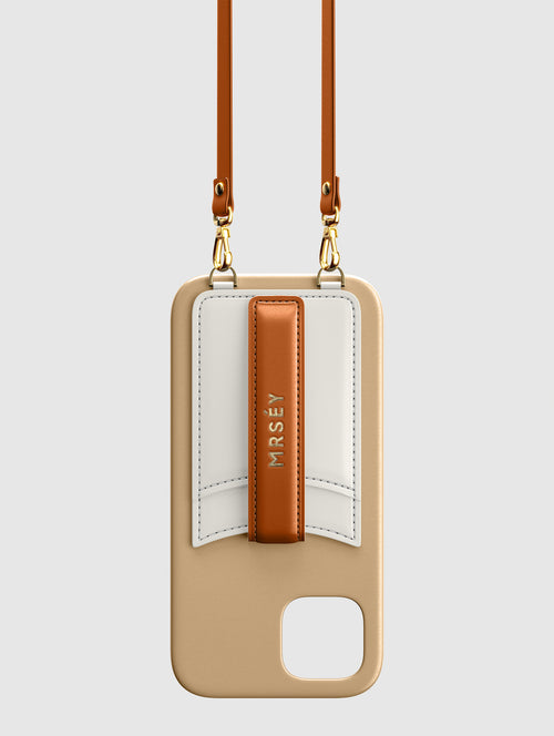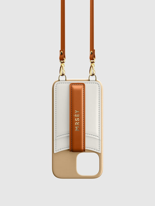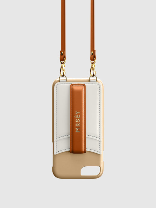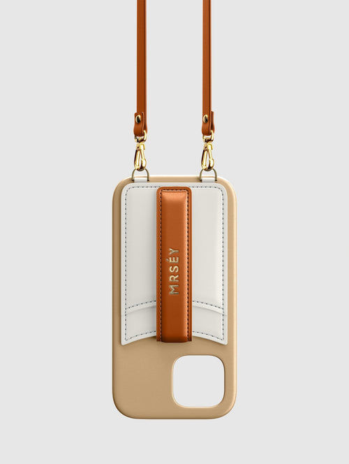 iPhone Hülle mit Strap - Cognac-Sand-White