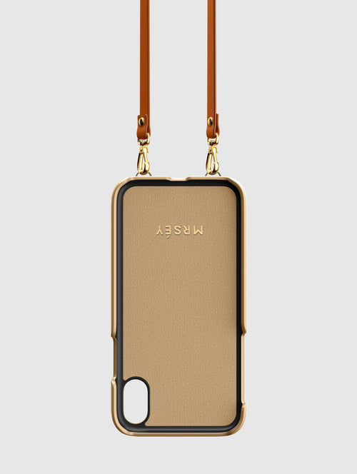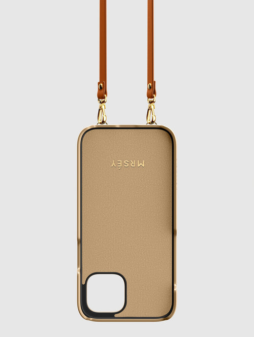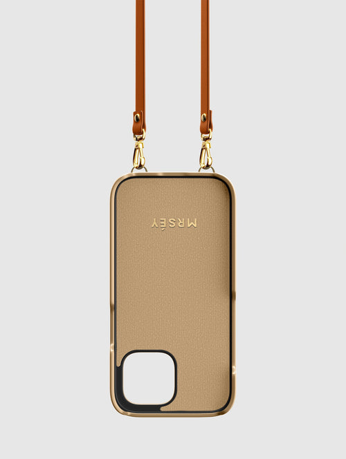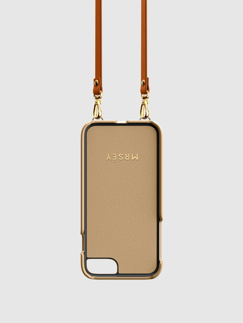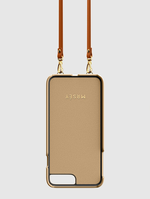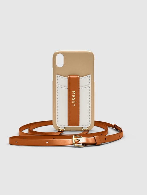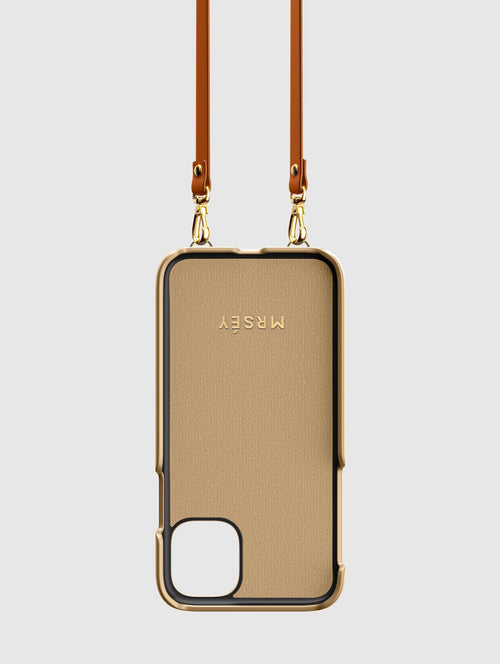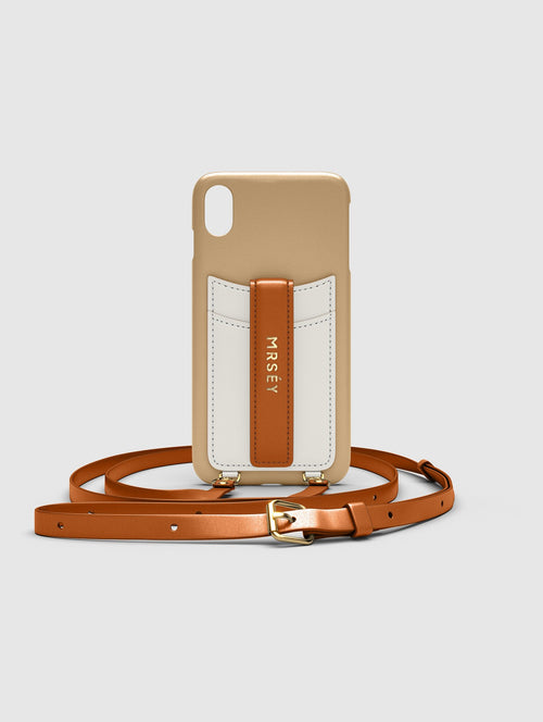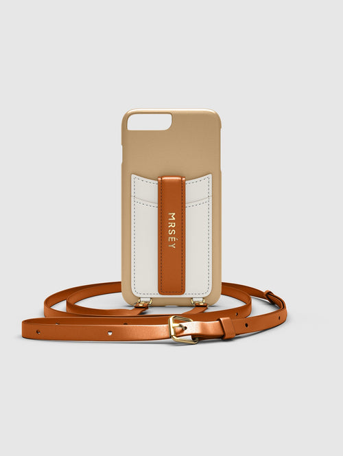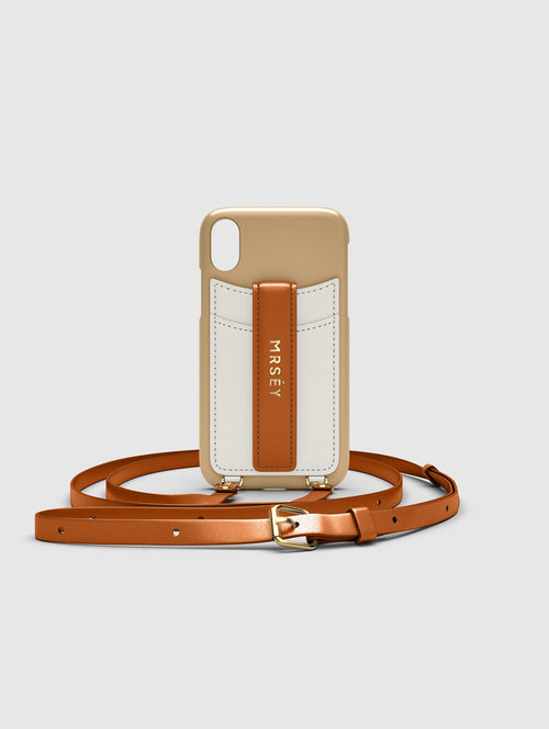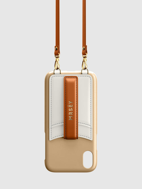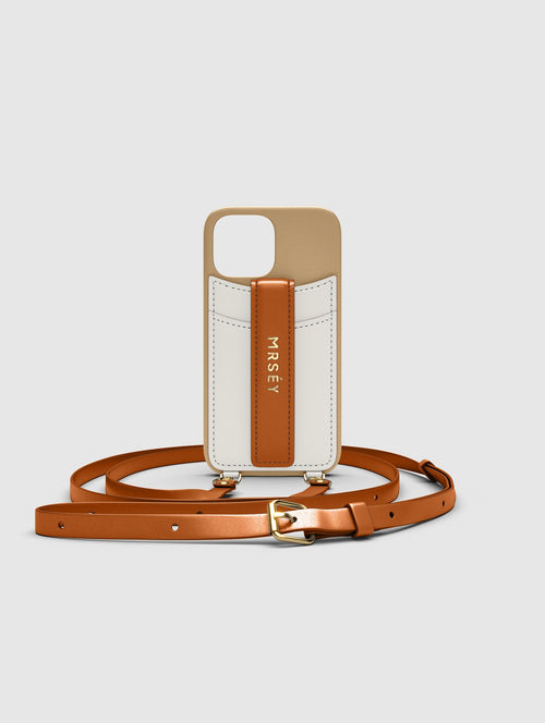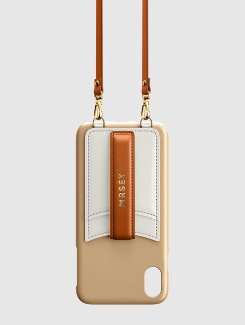 iPhone Hülle mit Strap - Cognac-Sand-White