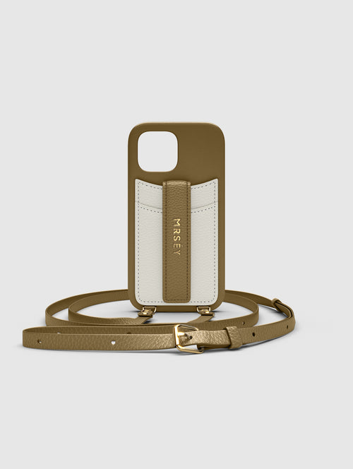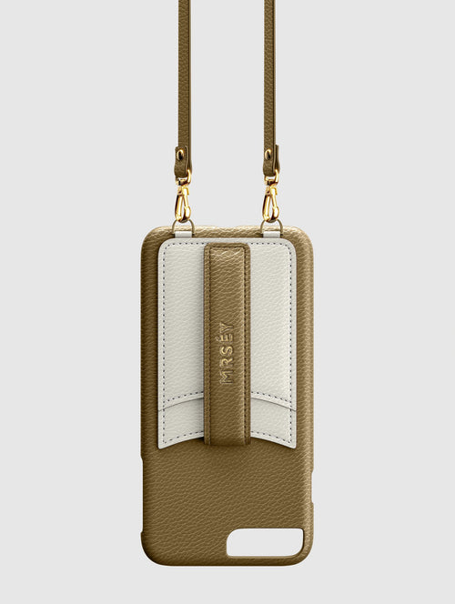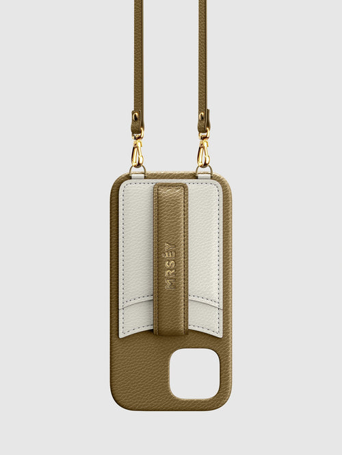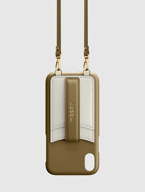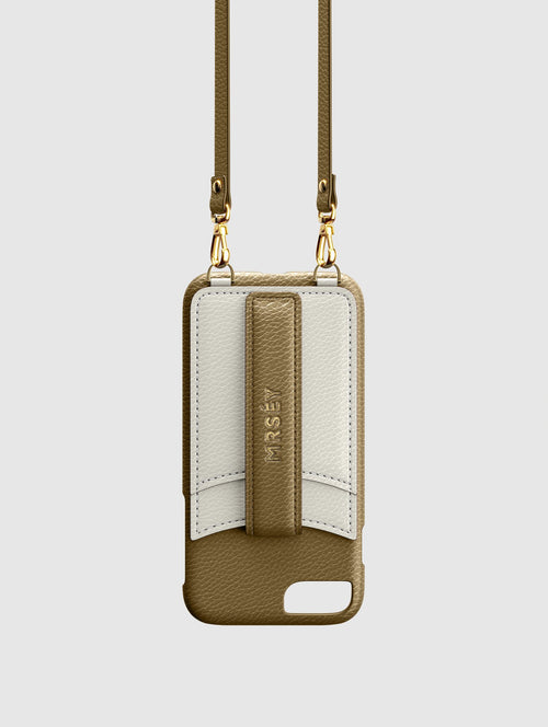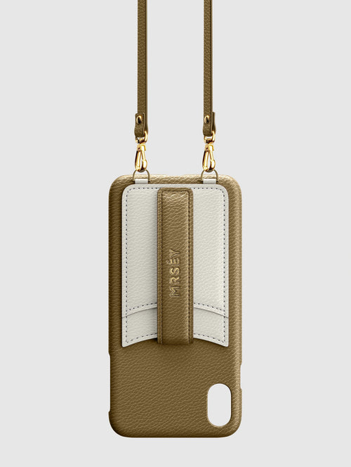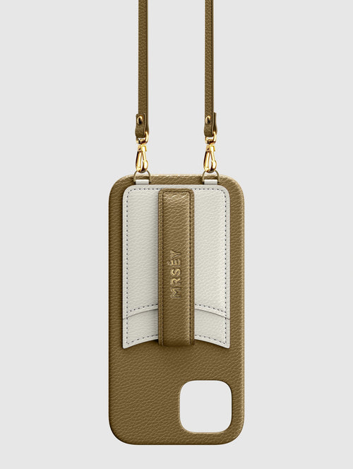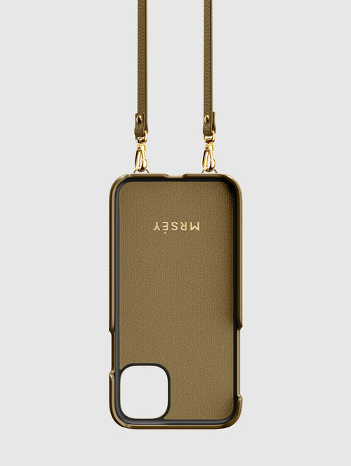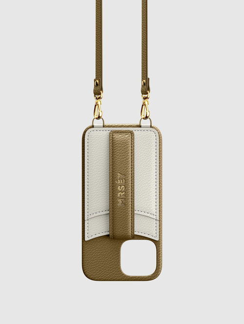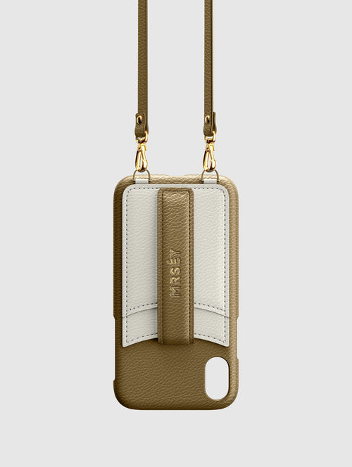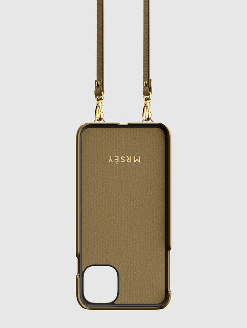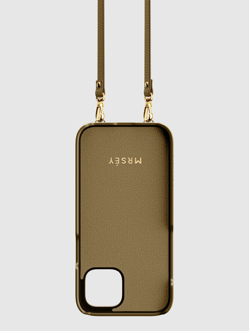Mit dem MRSÉY Crossbody Phone Case bleibt das iPhone stets griffbereit. Es wird als Kette um Hals oder Schultern getragen. Die elegante Hülle aus veganem Leder bietet zwei praktische Fächer für Kreditkarte oder Ausweis. inklusive Tragegurt.