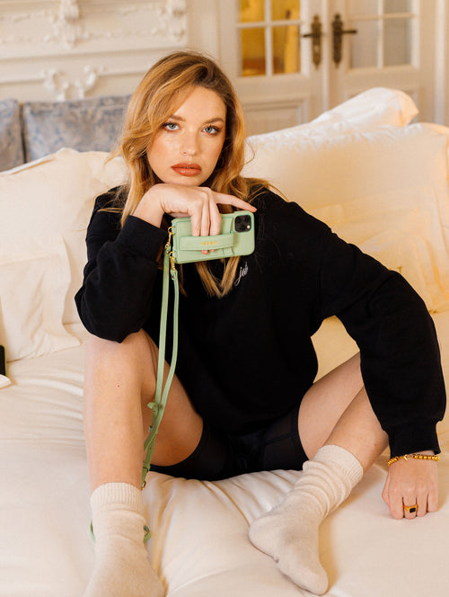 Mit dem MRSÉY Crossbody Phone Case bleibt das iPhone stets griffbereit. Es wird als Kette um Hals oder Schultern getragen. Die elegante Hülle aus veganem  mehr Details
