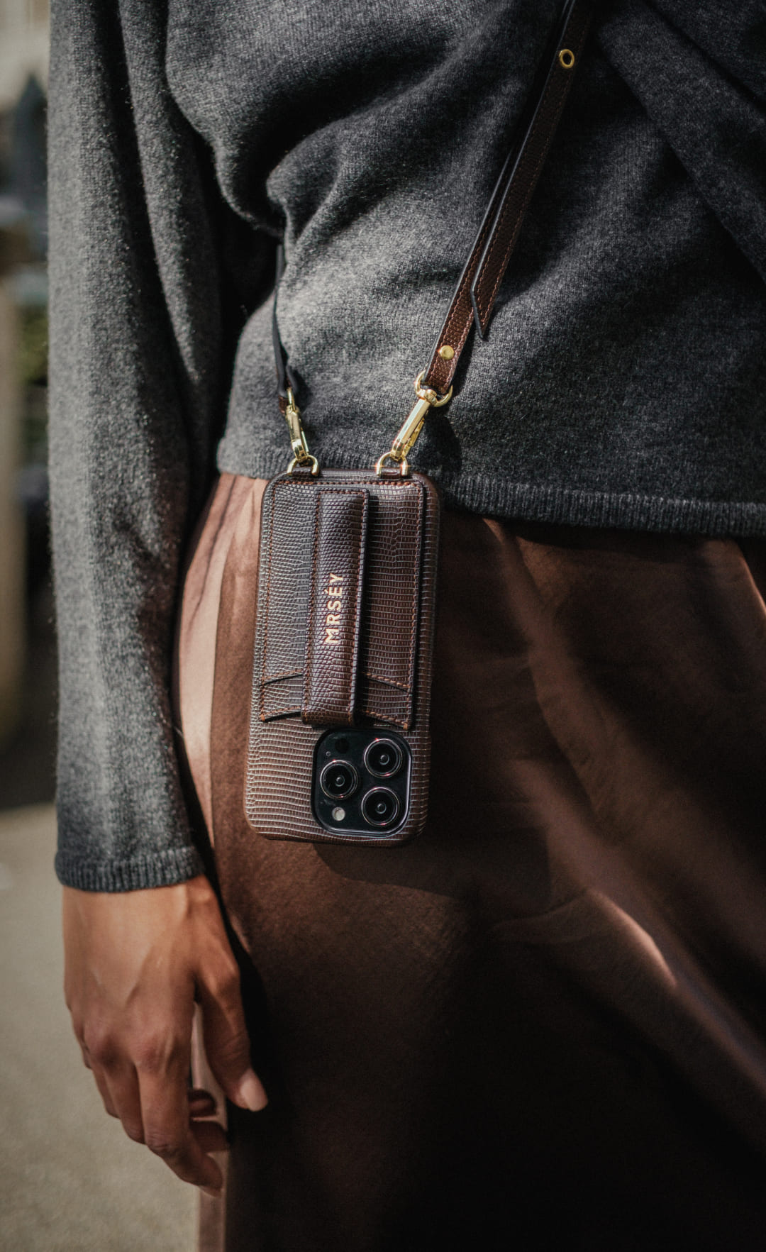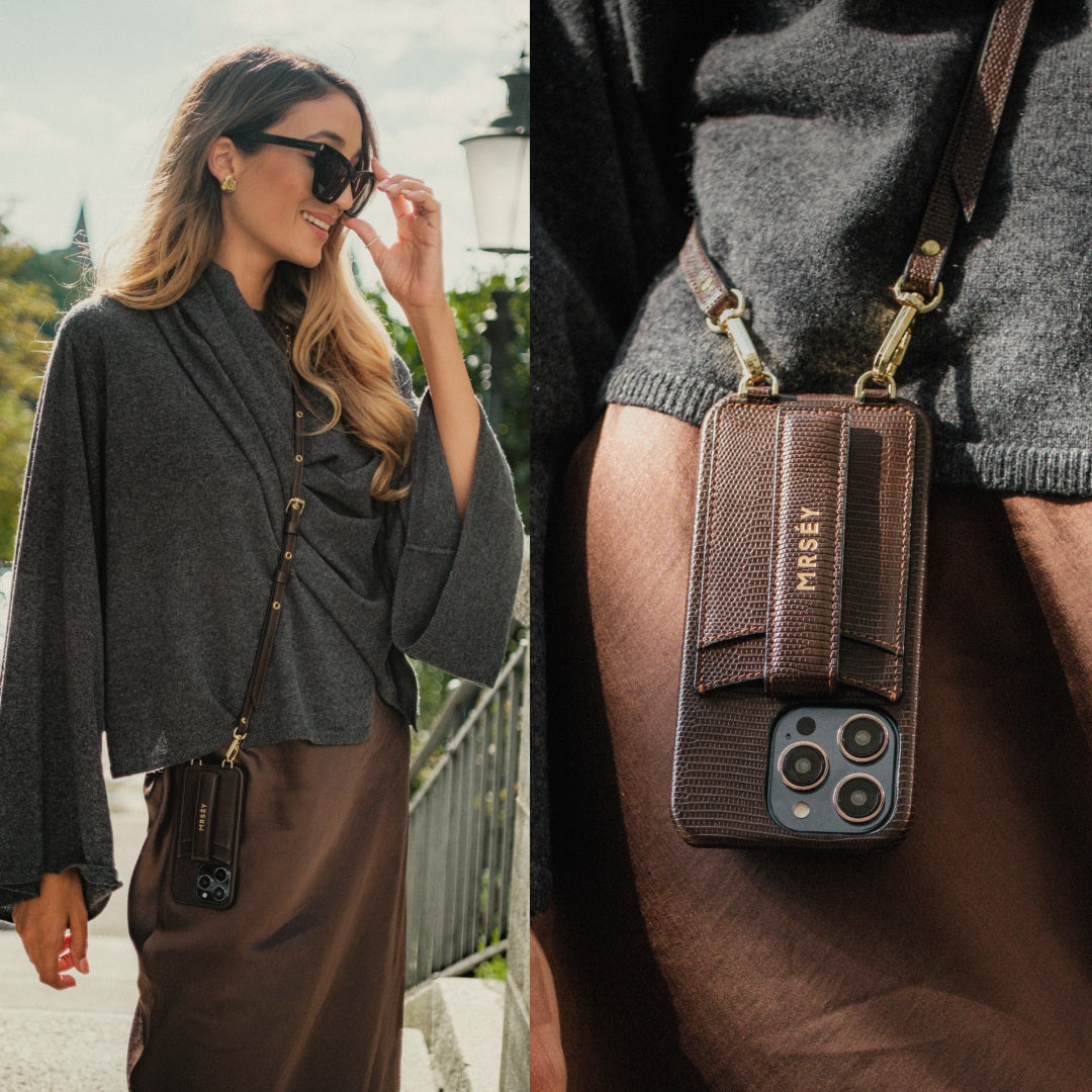 Dip your iPhone in chocolate. The vegan leather with lizard pattern ensures timeless beauty.