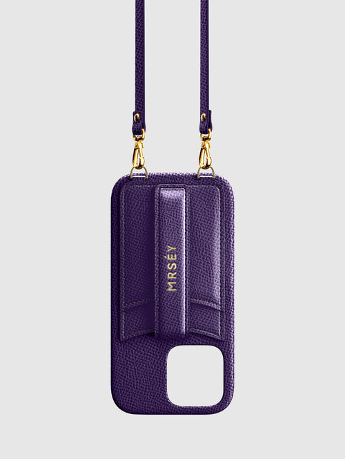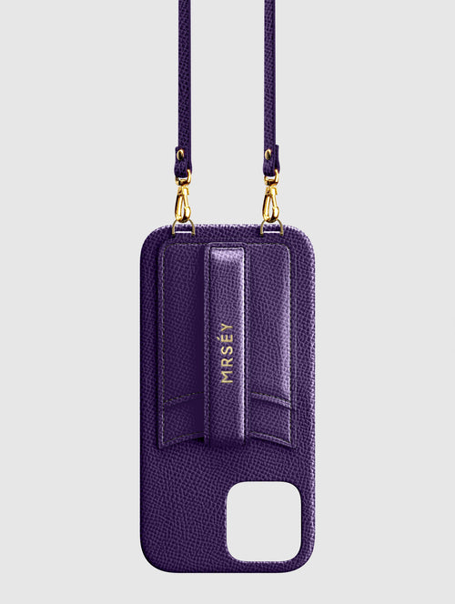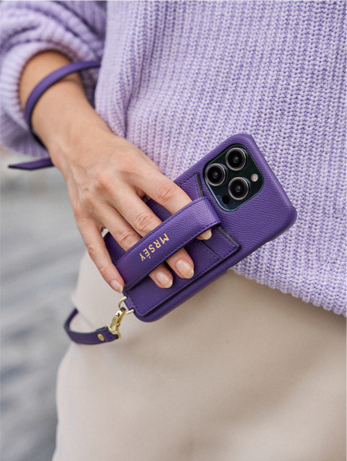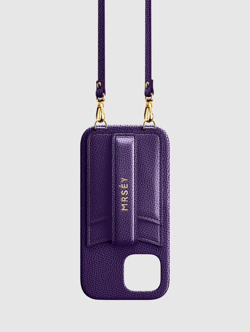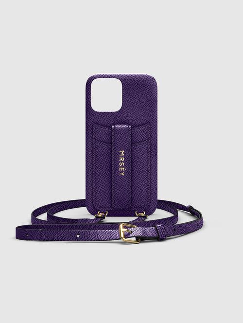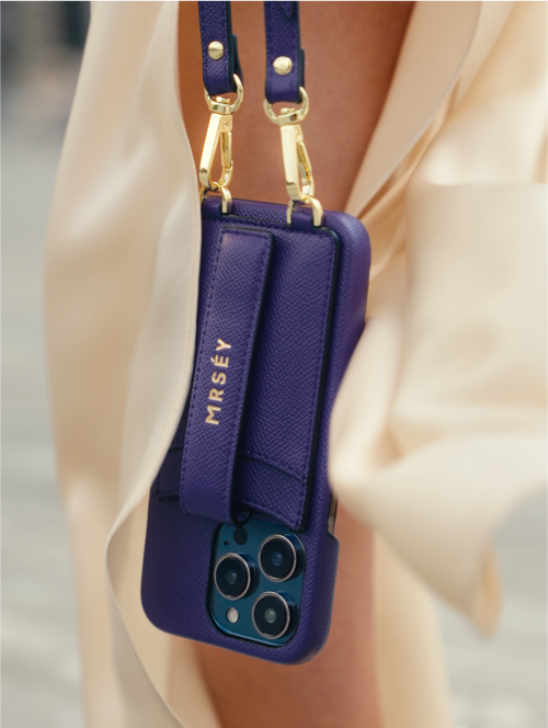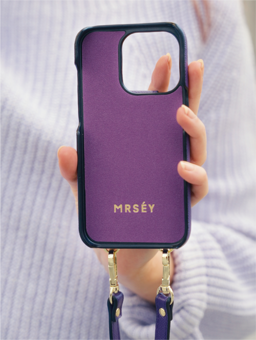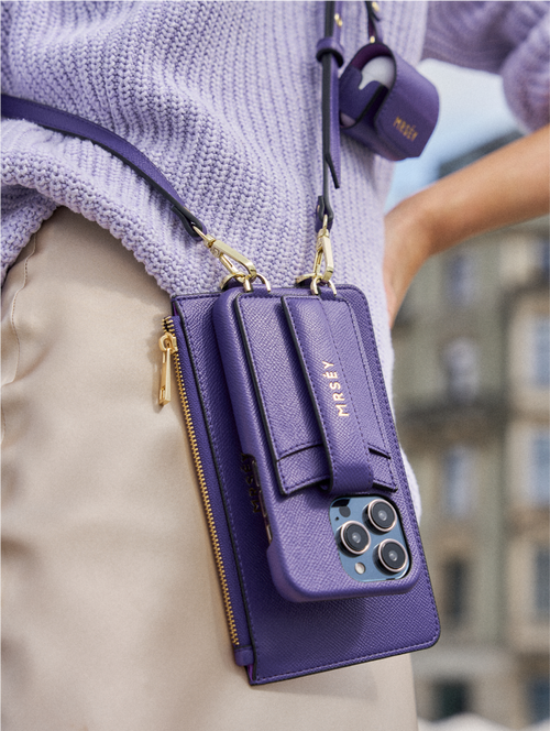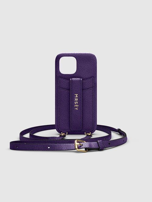 Keep your iPhone within reach with MRSÉYs elegant iPhone Case crafted from vegan PU leather. Can be worn across your body or around your neck. Two compartments with a handy pull-out tab perfect for your credit cards or ID. Includes strap.